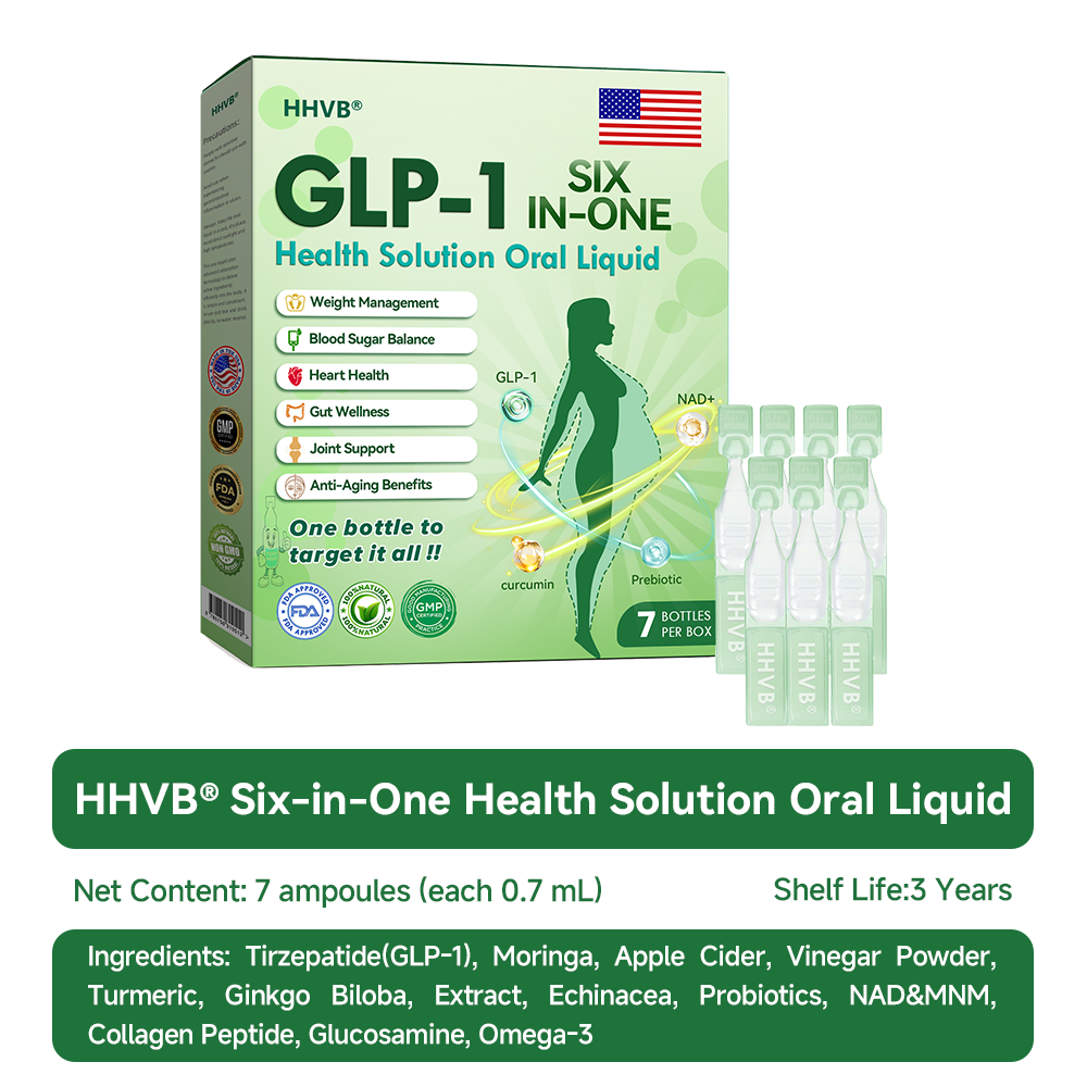 HHVB® GLP-1 SIX-IN-ONE Health Solution Oral Liquid was developed by a team of over 30 experts in international endocrinology and diabetology after more than 3 years of research. It combines Tirzepatide with powerful herbal ingredients to boost metabolism, accelerate fat burning, and support digestive and lymphatic health. This oral solution has been approved by the U.S. Food and Drug Administration (FDA) for its safety and efficacy, offering a scientifically backed solution for weight loss and overall wellness.